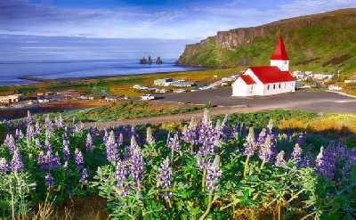 Explore the dramatic volcanic landscape of Kerið, known for its vivid red slopes and striking blue crater lake. Visit the charming Faxafoss, a peaceful waterfall offering beautiful countryside views.